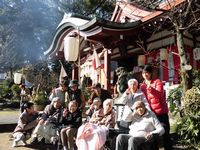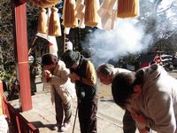 幾つかのグループに分かれて車で向かい、順番にお賽銭を入れ参った後は、それぞれで選んだおみくじを引かれ、神社で結んで帰られる方や持ち帰られる方とに分かれていました。