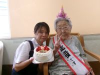 ご利用者様・スタッフで百歳のお祝いをしました。