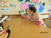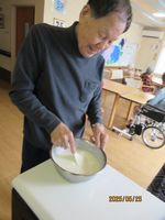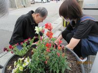 プランターに植えている綺麗なお花に、水やりをしてくださいました。「綺麗やな」「俺も昔は男前やったんで」と楽しまれていました。