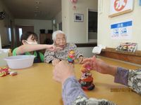 お手玉投げやお手玉を高く積み上げて遊びました。