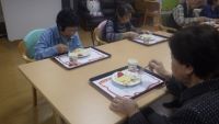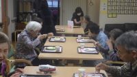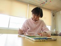 下を向き、集中して取り組んでいるのは大人の塗り絵♪ 何を塗っているのかまでは見えませんが、パシャっと撮影した後にちょっと声を掛けて集中を切らしてしまいました(^^;)