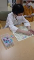 本日は、室内レクリエーションにむけて、利用者様に必要用具作りをお手伝いいただきました。