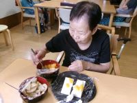 今回のおやつレクはプリン・ア・ラ・モード♪ 某有名ぷっちんをぷっちんとしてフルーツと生クリームをかけてハイ!(^^)! 出来上がり~♬皆様美味しく召し上がられました♪