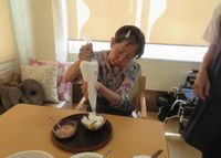 皆様甘い物が大好き、生クリームが足りなくなるくらい、たくさん使用していました。