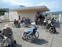 屋上に上がり、ストレッチを行ったり、車椅子の方は自走して、景色を眺めたりと、