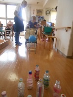 下の左の画像は、 ボーリングクラブ といって、車椅子の方でも参加できるように、レールを作成して楽しんでいただいています。