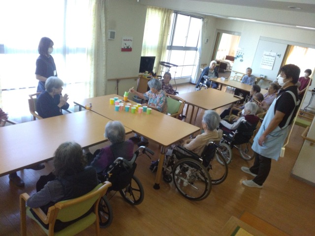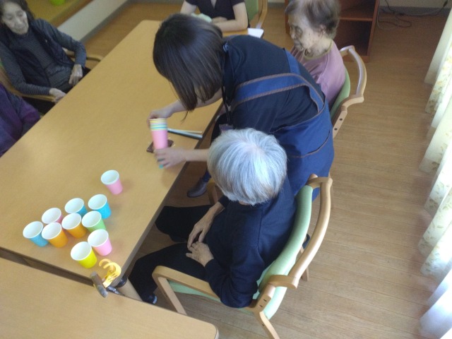 今回は「コップ積み上げゲーム」を行いました。