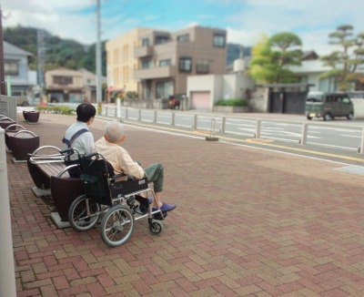本日は玄関入口横の道路・歩道にベンチがありまして
