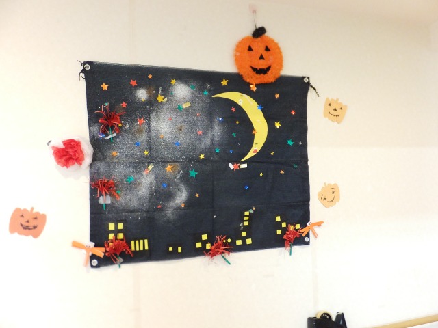 手作りのハロウィン飾りを皆さんで一緒に飾りました♪