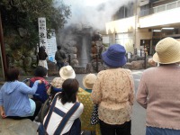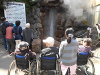 熱水が30m吹き上げるということで、石の屋根を設置したそうです。