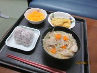 大分名物の団子汁・おにぎり・かぼちゃの天ぷら・