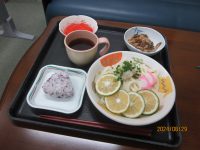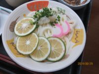 かぼす冷やしおろしうどん・おにぎり・麩の煮物・