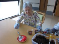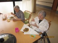 入居者様と一緒に、ホットプレートで焼いていきます。