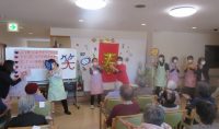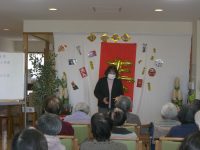 施設長より新年の挨拶、続いて初笑いの福を呼ぶ「ヨガ体操」を