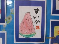 絵手紙風に仕上げ、フロアの壁に飾り、夏を感じて頂いてます♪