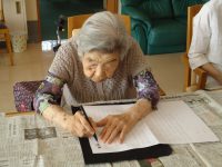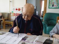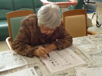書道の得意なスタッフがお手本を作り、書道レクを行いました。