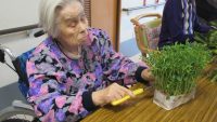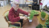 収穫したぶなシメジ、豆苗は炒めものにし、昼食の時間に皆様で召し上がって頂きました。