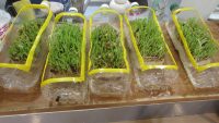 ぶなシメジ、豆苗を収穫して頂き、その後は水耕栽培で育てます♪ シイタケの原木を水に浸したりと本格的(^^♪