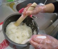 もち米を平らにし、特製の餡子を包み仕上げに香ばしいきな粉をまぶし出来上がりです(^^♪