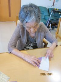 10/1に折り紙の得意なスタッフが、特技を活かし「折り紙レクリエーション」を行いました。