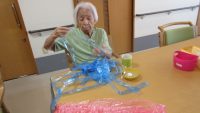 スズランテープを細かく割く作業に指がとても疲れる様子ですが、本当に皆様、頑張って頂き立派な七夕飾りが完成しました♪