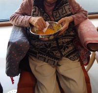 入居者様のお顔よりも大きなどら焼きが出来ました(^^♪ 大きいから食べれるかな・・と心配されていましたが、