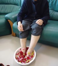 1フロアで薔薇の花びらをお湯に浮かべて・・・手湯、足湯をしました!!