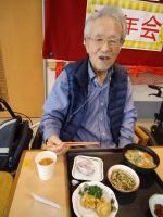 1Fフロアの忘年会は、別府駅の「駅弁」を昼食にご用意しました。スタッフ扮する駅弁売りがお一人づつお渡ししました♪