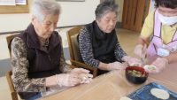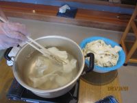 郷土料理でもある団子汁♪ 皆様も馴染みのある団子汁作りに手際もよく、団子を丸め少しねかせたあと、びよーんと