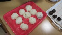 お一人づつご自分のおはぎを作っていただきました。モチモチとした食感♪ きな粉と餡子のやさしい甘さにもう一つ