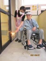 先日の敬老会の日の夜・・・コロナ禍で外出も面会も制限されている中、少しでも楽しんで頂けるようにと「ミニ花火会」を