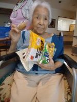 テーブルの上にお菓子やジュース、日用品を並べると、「これも欲しいな♪」「美味しそうね♪」と手に持てない程の商品を手に取りながら、お買い物を楽しまれておりました(#^^#)