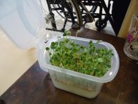 2日後には発芽し、それからみるみるうちに成長し先日収穫をおこないました。お皿一杯にカイワレをのせ、マヨネーズをかけ皆で美味しく頂きました♪