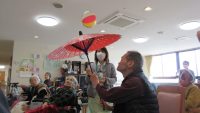傘まわしも、意外と難しかったですが、入居者様も参加され上手に傘を回されとても楽しい新年会となりました!