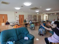はぴね別府流川では、個別機能訓練の一環として、毎日昼食前にラジオ体操と、口の周りの筋肉を意識して動かしスムーズに食事やお話ができるよう口腔体操を行っております。