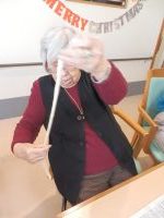フロア内でも、クリスマスの飾りつけを行いました。壁に★やイラストを貼って頂き、ツリーのタペストリーに、入居者様が塗り絵をされた靴下や鈴を貼り、フロア内もクリスマス一色になりました(#^.^#)