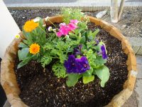 玄関のお花を入れ替えました♪ 今回はペチュニア・マーガレット・アリッサム等々