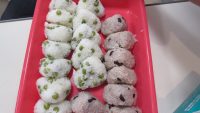 収穫したグリーンピースを下処理し、ある日の昼食にグリーンピースご飯を炊き、おにぎりにして皆様と美味しく頂きました(#^.^#)