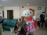 太鼓の後は、「キティちゃん」が流川に来館♪ 入居者様お一人お一人と握手、写真撮影をしてくれました!入居者様達もとてもとても喜ばれ、良い笑顔を見る事ができました。キティちゃんって本当に年齢問わずに人気者だなあと改めて感じると同時に、目の前にいるキティちゃんについついテンションが上がる自分もいて、とても楽しい時間が過ごせました。午後から亀の井ホテルさんで「ハローキティーショー」を開催。沢山の方が足を運んで下さり、大盛況の中「はぴね祭り」を終える事が出来ました!
