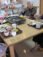 7月の行事として、夏の暑さに負けず「スタミナ」をつけて頂く為バーベキューを行いました。ビールを飲みながら焼き立てのお肉、野菜を沢山召し上がって頂き、何時もとは違う料理に舌鼓を打たれました(^^)/