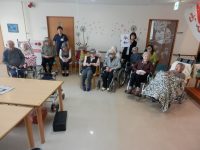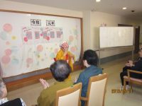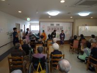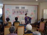 踊りをされているボランティアさんが来館され、祝いの舞を披露してくれました。馴染みのある曲をご一緒に唄って下さったり、「おてもやん」等の踊りには、入居者様達も自然と手拍子やかけ声も聞かれ、大変盛り上がった父母の日の会となりました。