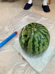 見事、スイカにひびが入り