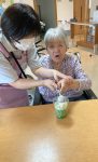 カットして頂いたフルーツにサイダーとブルーハワイを