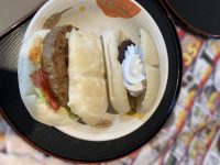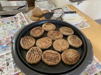 焼きたてのハンバーグを挟んだパン♪と