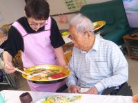 途中、鍋から豆がはじけ飛ぶハプニングも