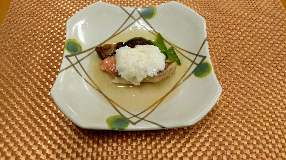 『すりおろした山芋を魚や野菜などにのせて蒸した料理の事』