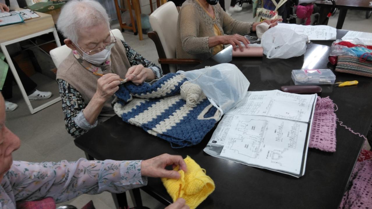 デイサービスご利用の方は是非是非、編み物クラブを目掛けてご用命くださいませ!