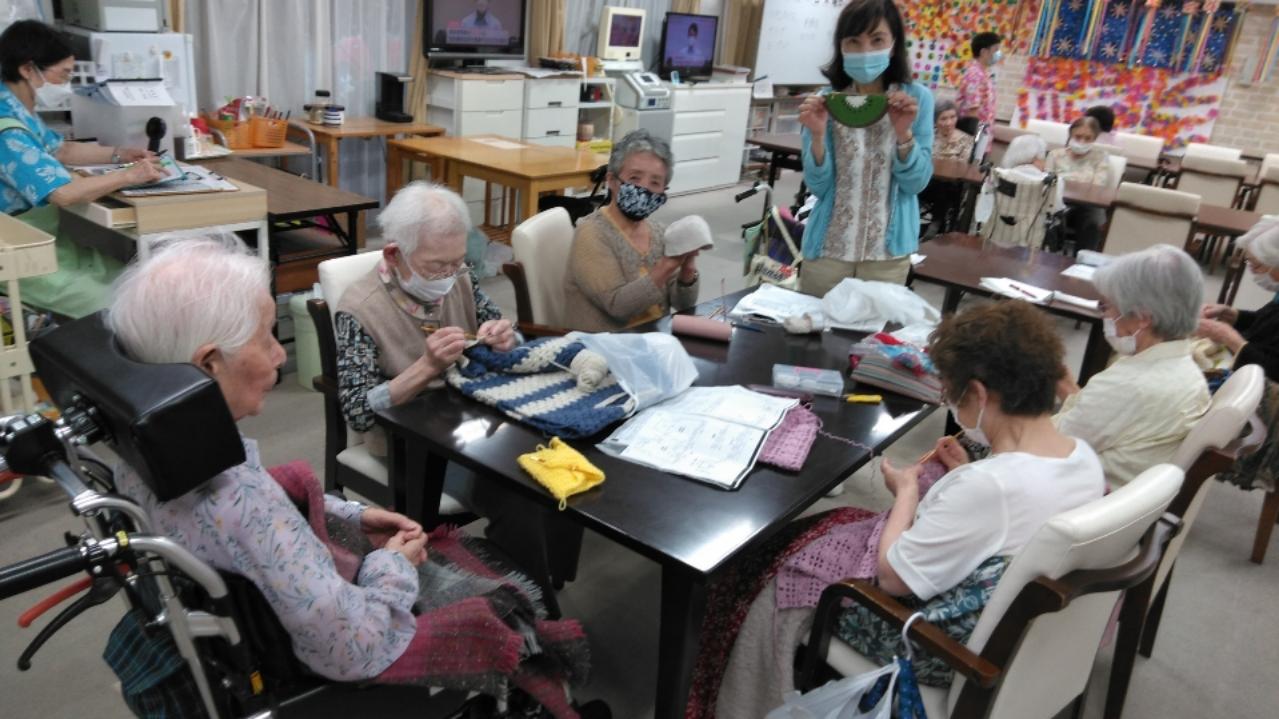 人気の編み物クラブでございます。やはり、女性に人気のレクリエーションとなっております。