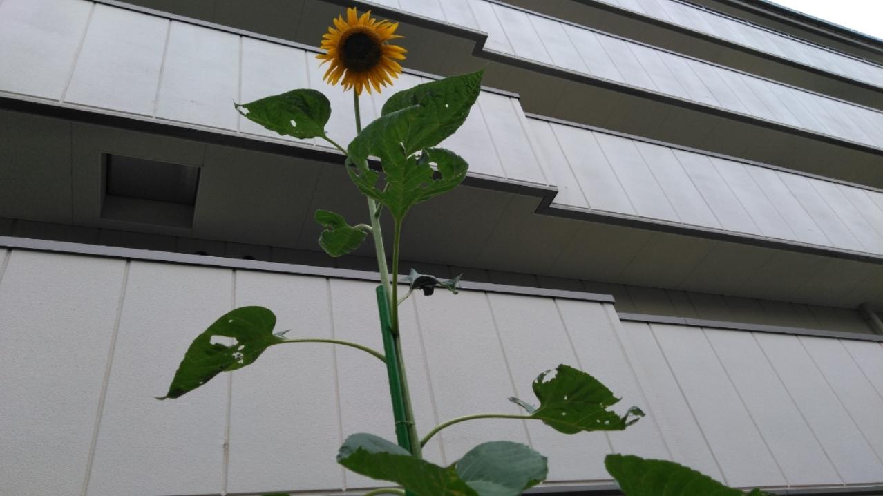 けど、そんなに強いヒトばかりではありませんよね。この向日葵も支柱があるから真っすぐ伸びてるんです♪