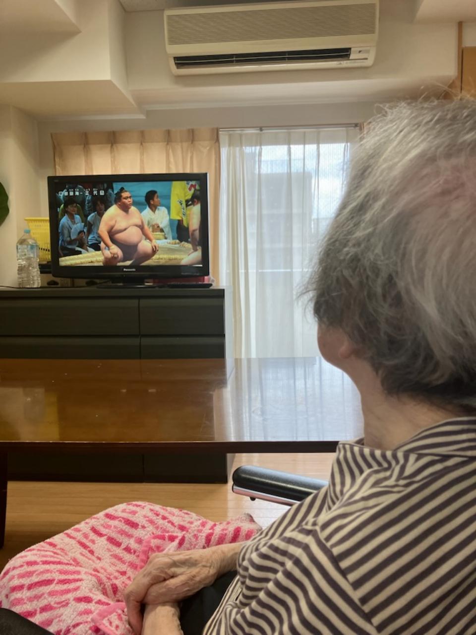 リビングで大相撲をご覧になられている方がおられました!